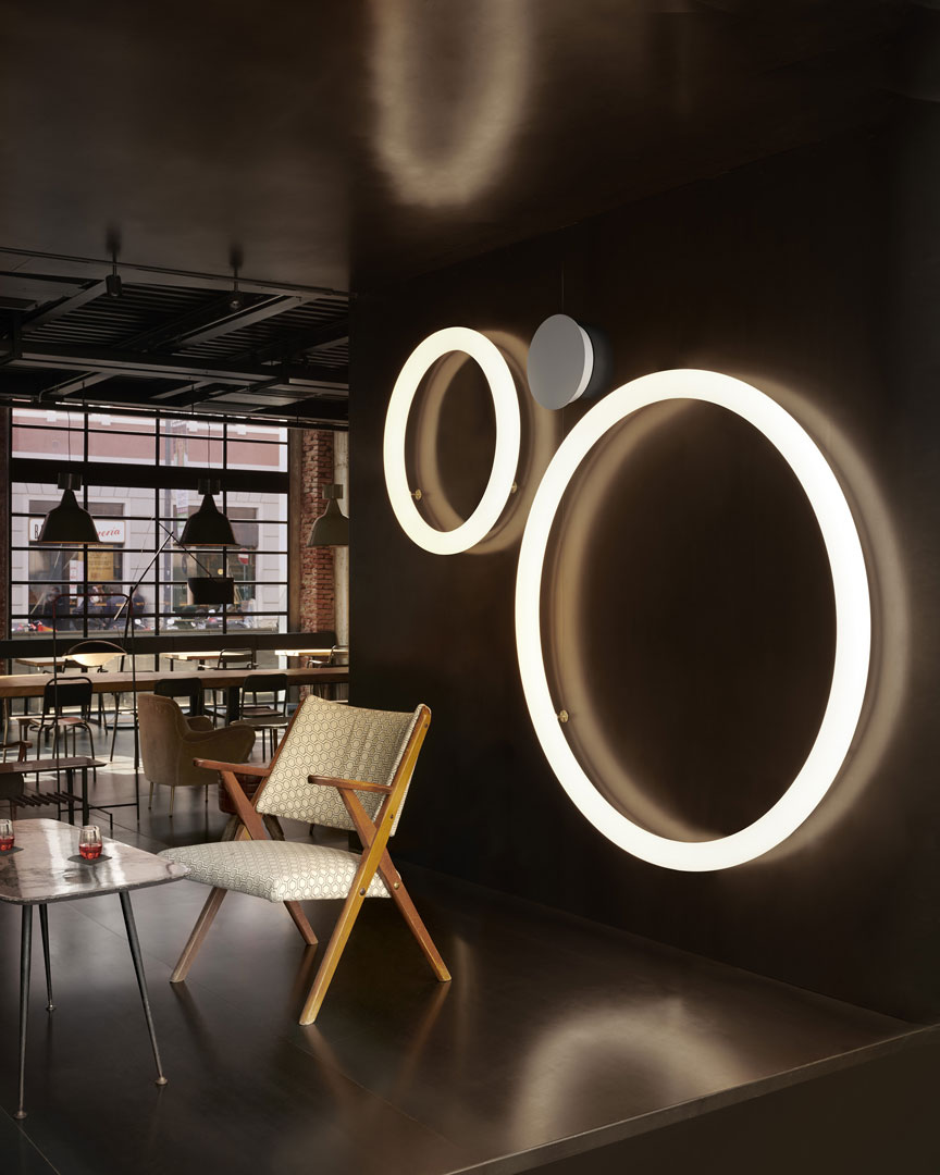 Giotto может быть использован как потолочный или настенный светильник.