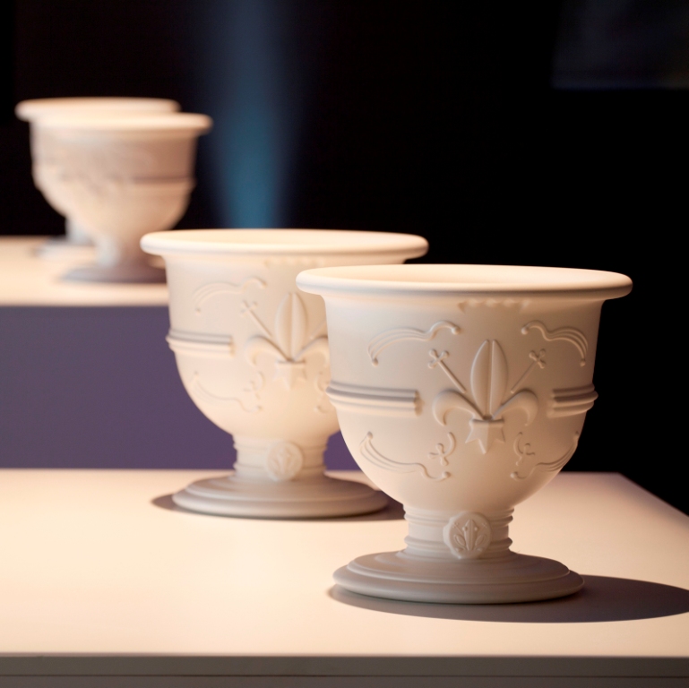 Универсальная ваза для цветов, бутылок или льда с характерными деталями и отделкой выполненной в стиле рококо.
