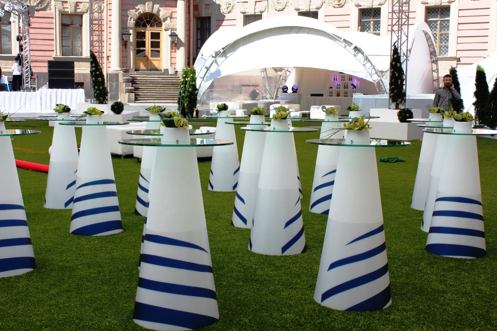 Обладает специальным углублением в самой верхней части, позволяющей установить на столик бутылку с напитком или композицию из живых цветов.