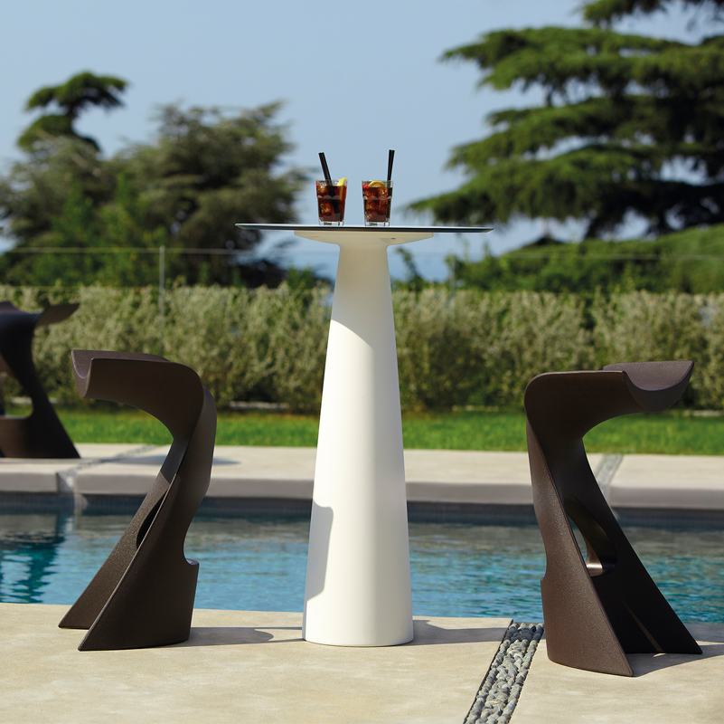 Koncord - это высокий стул, отличающийся органическими и динамичными линиями, идеально подходящими для декорирования в живописном и оригинальном баре или на террасе.