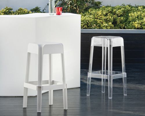 Штабелируемый барный стул для использования внутри помещений а также на улице.