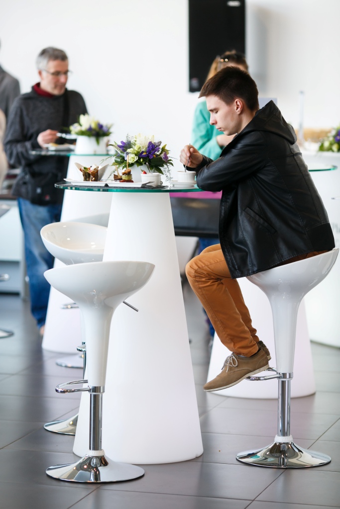 Для удобства посетителей были предоставлены коктейльные столики PEAK и барные стулья BOMBO.