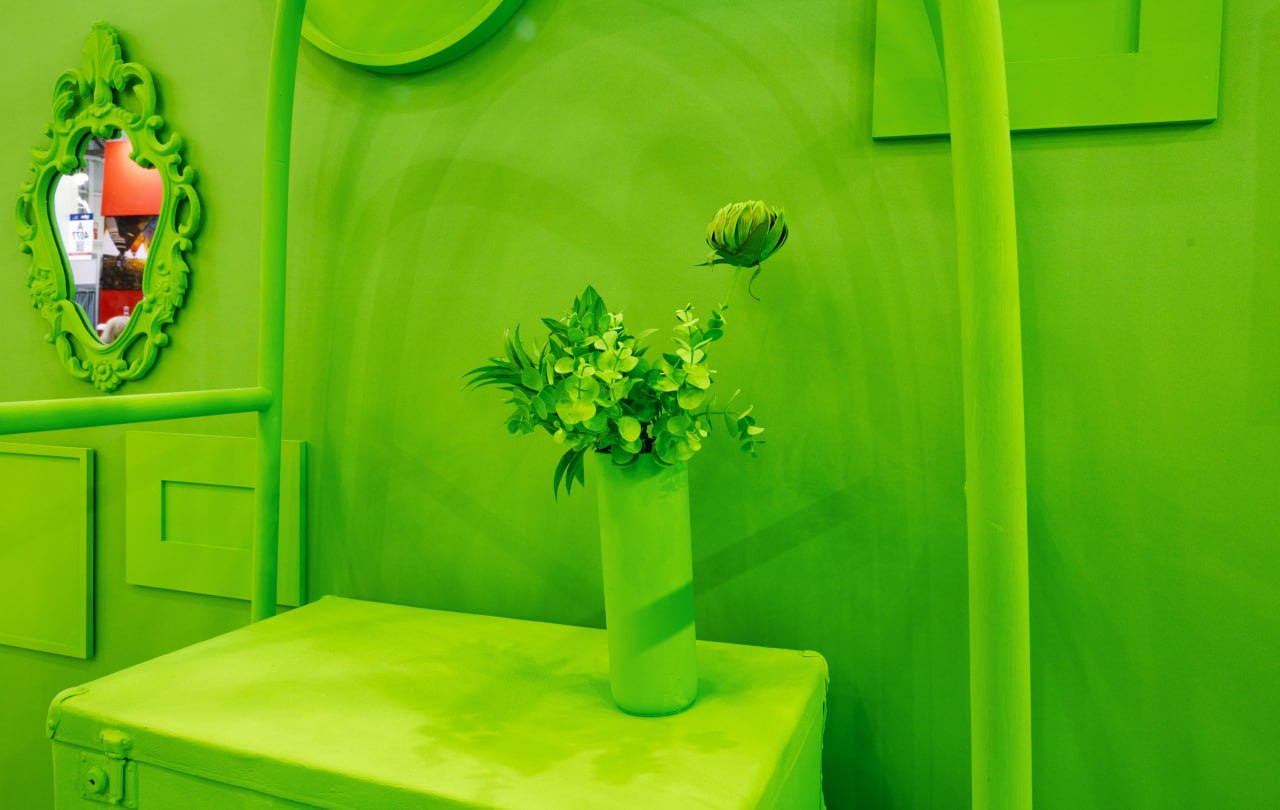 Также оформили все декорации: от стойки регистрации с объёмными буквами до выкрашенных картин и часов на стене.