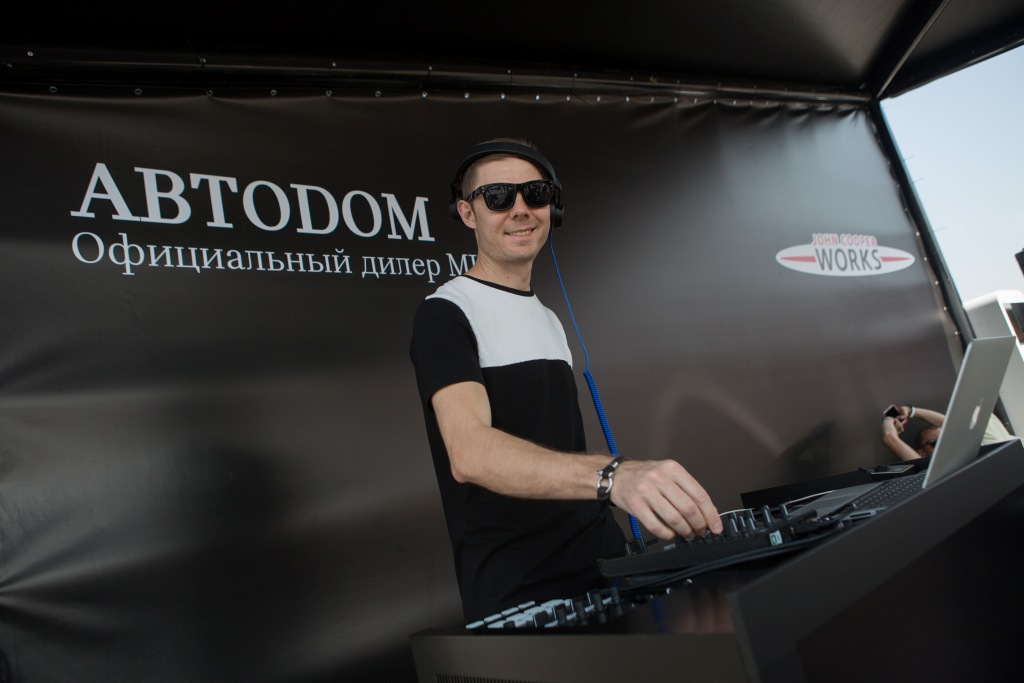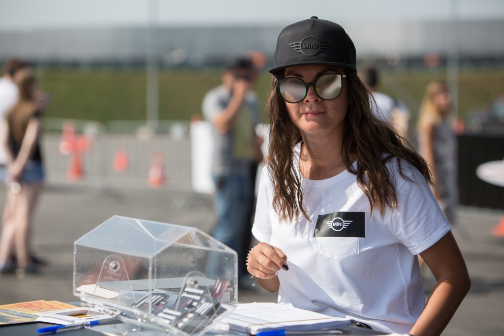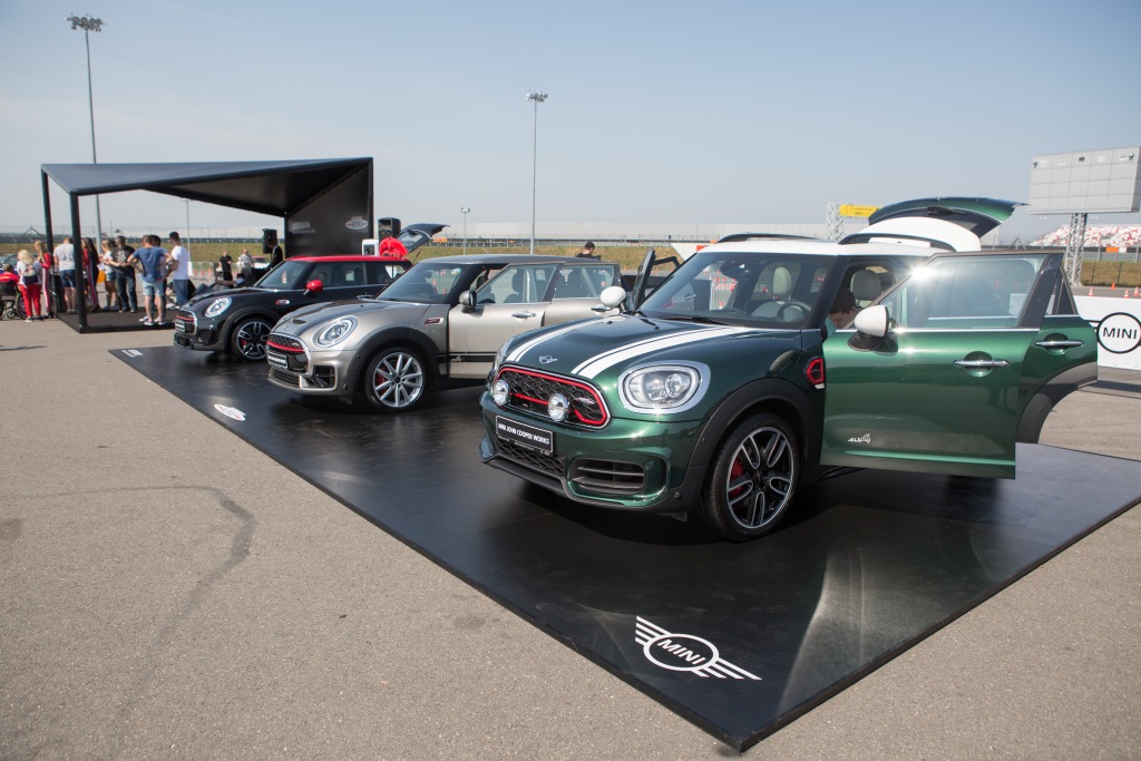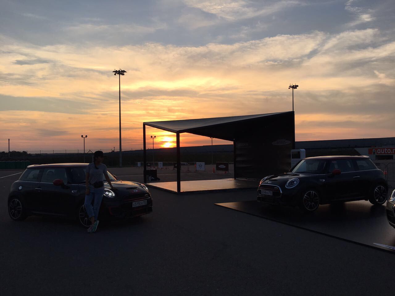 Тентовые конструкции KITE BLACK и подиум для автомобилей для формирования партнерской зоны MINI в рамках гонок СМП "Российская Серия Кольцевых Гонок"