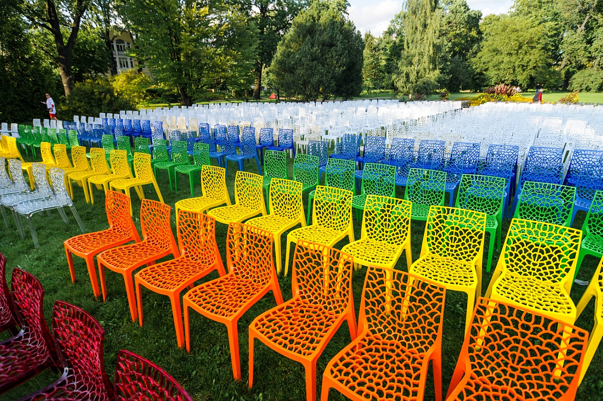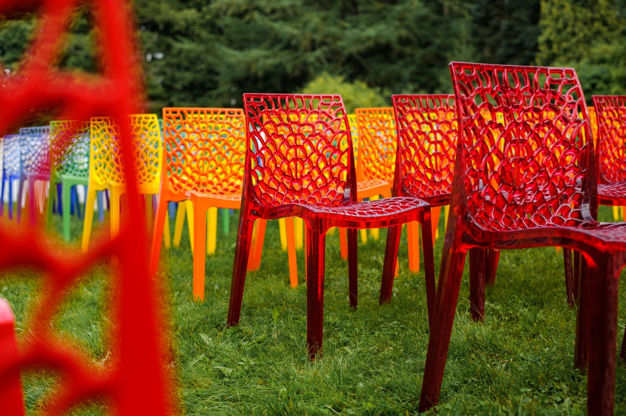 Более 700 разноцветных стульев гармонично дополнили пространство музыкального праздника в Ботаническом саду.