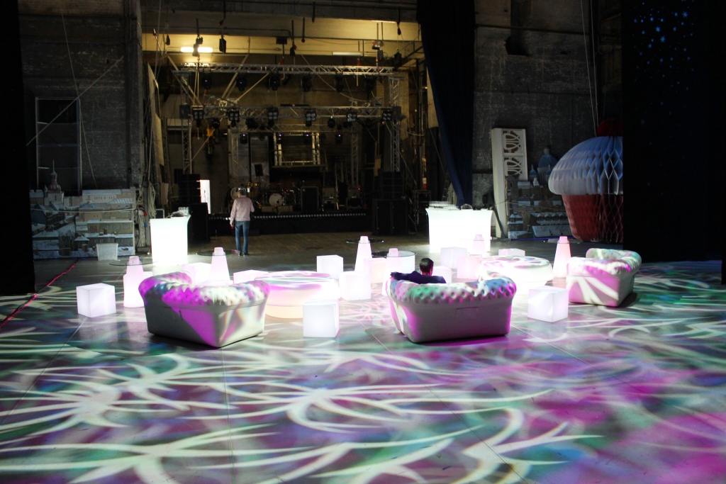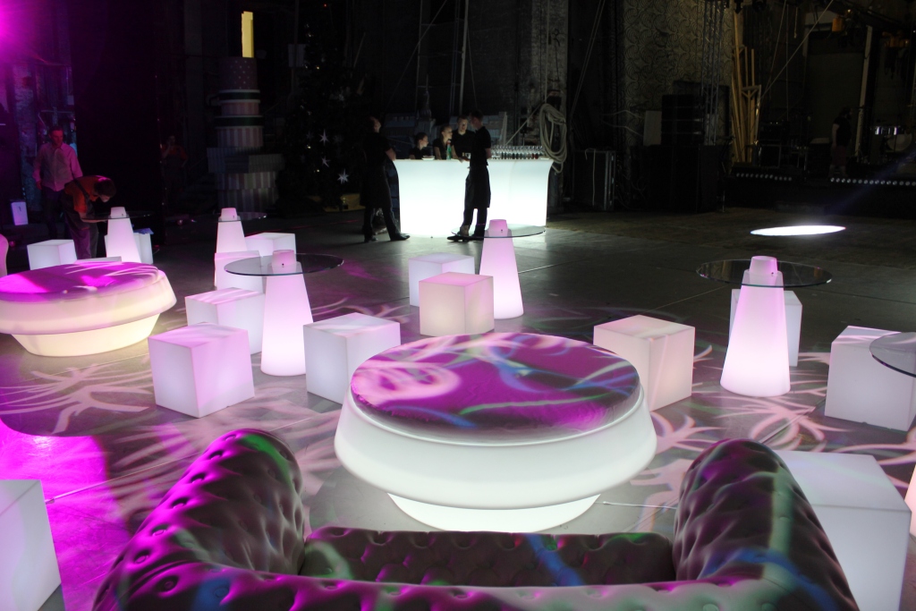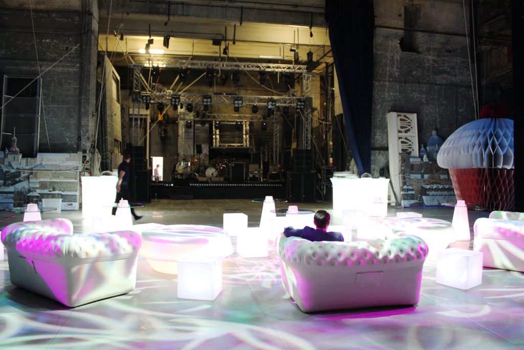 Lounge зона обеспечена надувными диванами BigBlo и большими пуфами с подсветкой GIO POUF. Подготовка площадки для встречи гостей заняла всего 45 минут.